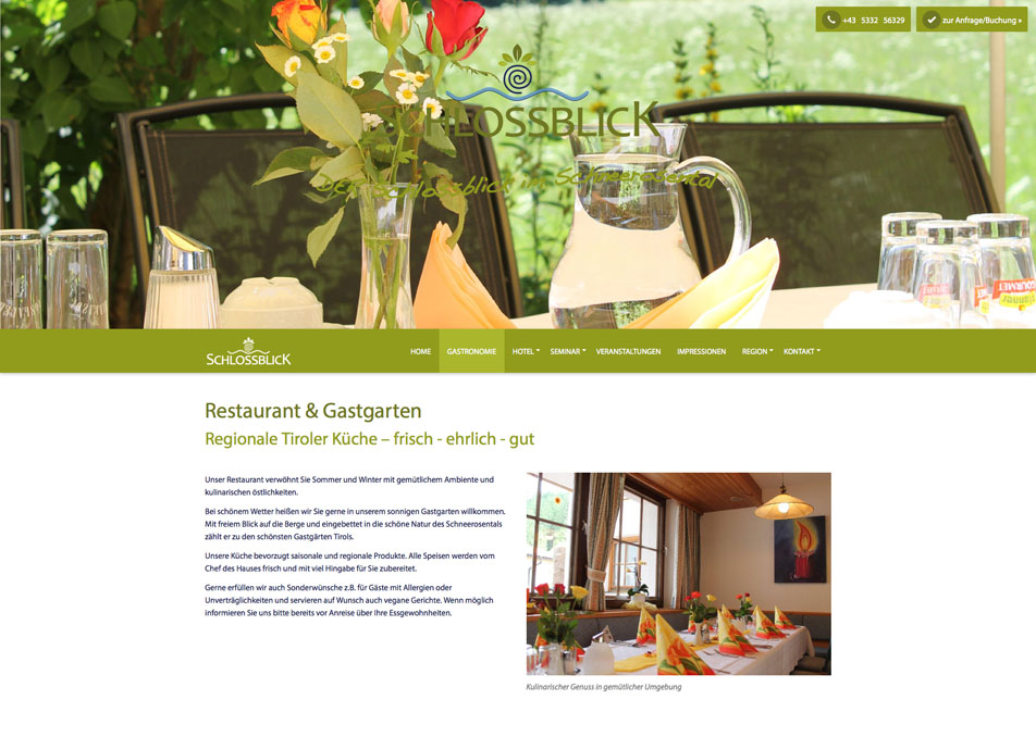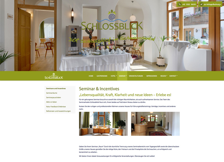 Das Seminarhotel Schlossblick in Tirol bietet Raum für Genuß, Erholung und Seminare. Das professionelle aber auch familiäre Ambiente ist für viele Veranstalter und Gäste ein Grund immer wieder zu Besuch zu kommen.